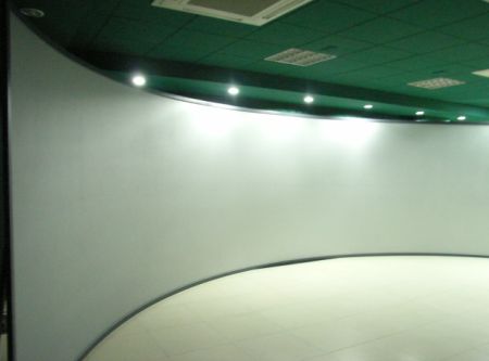 從視覺角度講,采用180度的柱面環幕立體影像——它是指銀幕保持在有相同圓心的一段弧度上,而不是一個平面(平幕)上。銀幕的高寬比例為16:9,柱面環幕3D物體運動影視范圍大為擴展、開闊視野,擺脫了平面視覺束縛,使影視空間和現實空間更為接近,并且可以產生橫越、環繞等多種運動方式,從而產生時空變換的感覺。它區別于“平面四維影視”——限制了觀眾的視覺角度,也限制了物體的運動方向。