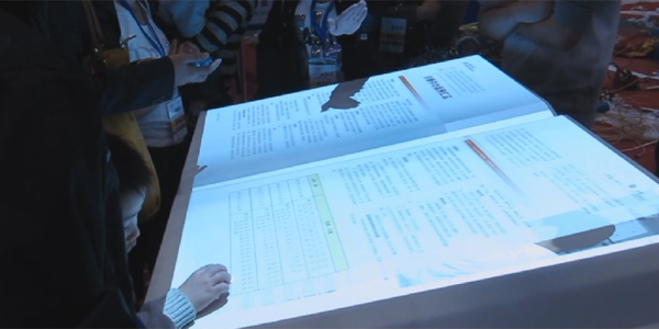 虛擬電子翻書(又可稱空中翻書、隔空翻書、虛擬翻書、魔幻書)外形猶如一本打開的書,在參觀者面前呈現一本等離子電視方式或以投影機投影成像方式的虛擬書,參觀者只需站在展臺前方,用手在空中揮動做出翻書的動作,電子書就會隨著手臂的左右揮動進行前后的翻頁,同時也可以觸摸投影畫面上設置的書簽進行查詢?yōu)g覽。書中包括有文字、圖片、聲音、圖像、視頻等多媒體信息。展廳可以將展館的介紹和珍貴照片放入其中,供參觀者瀏覽。 我們的產品區(qū)別于市場上同類產品的優(yōu)勢在于,不單可以通過人的揮手產生翻頁效果,同時還能通過頁面上的書簽。當人的手放在書簽上方時,書本將會按照書簽的觸發(fā)信號做出相應的反應,這一優(yōu)點可以避免在一個很多頁的書本上操作時,一次翻頁過多而使人失去興趣的問題。參觀者可以通過書簽自由跳轉到所要了解的目錄。