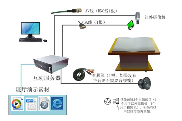傳感控制系統,投影機,應用服務器,書模,線纜輔材。編輯本段實現方式 投影機方式:當展廳或展館內光線條件允許時,建議優先使用投影機方式。